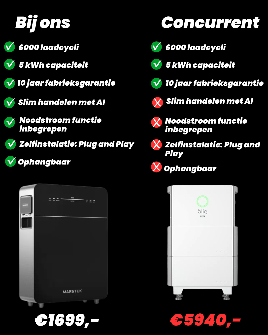 De Marstek Venus E 3.0 heeft een capaciteit van 5 kWh, met een noodstroomfuntie.