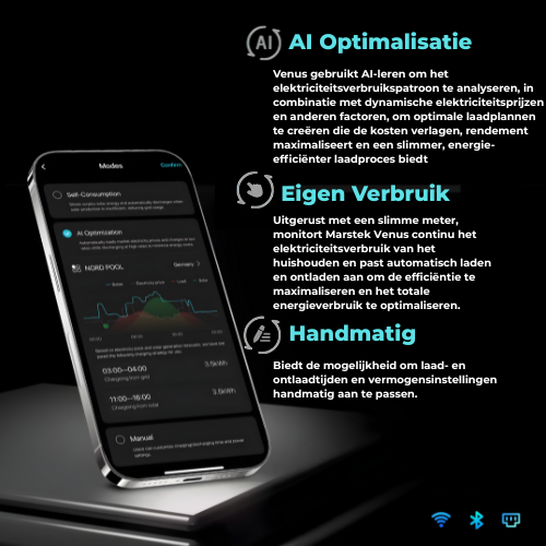 Met de MARSTEK-app schakelt u moeiteloos tussen AI-optimalisatie, zelfconsumptie en handmatige modus.